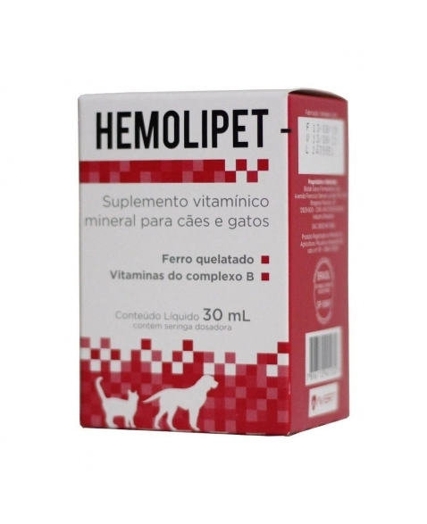 O Suplemento Vitamínico Mineral para Cães e Gatos Hemolipet é um suplemento alimentar composto por vitaminas e minerais quelatados, indicado para cães e gatos em qualquer idade.