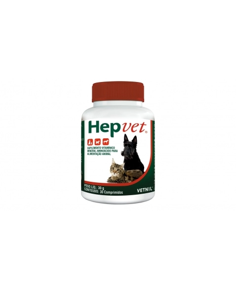Hepvet Comprimidos é indicado para auxiliar no metabolismo de gorduras e proteínas. Contém nutrientes precursores da glutationa.