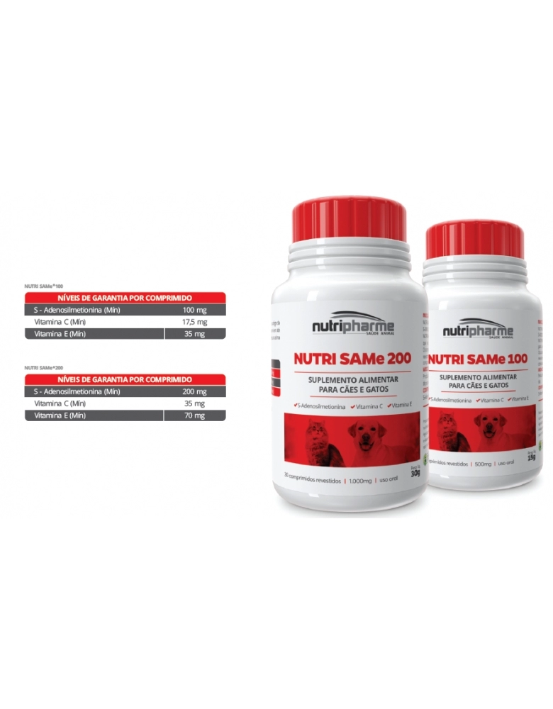 NUTRI SAMe® 100 e NUTRI SAMe® 200 são suplementos alimentares formulados com S-Adenosilmetionina associados a Vitamina E e Vitamina C, sendo estes