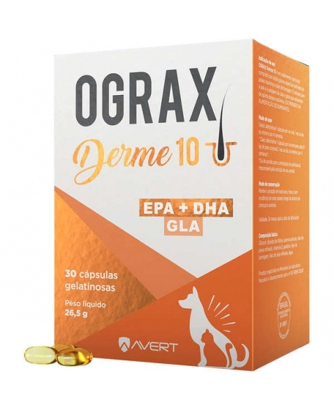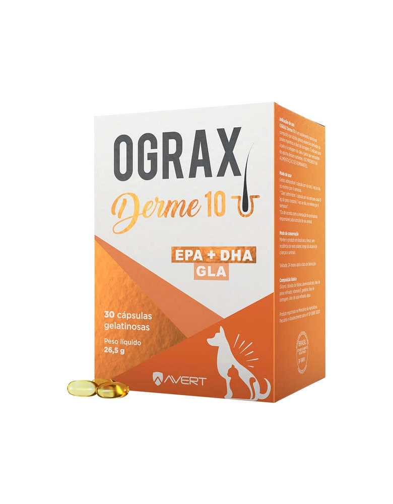 OGRAX DERME 10 é um suplemento alimentar composto por ácidos graxos essenciais derivados de peixes marinhos e óleo de borragem.