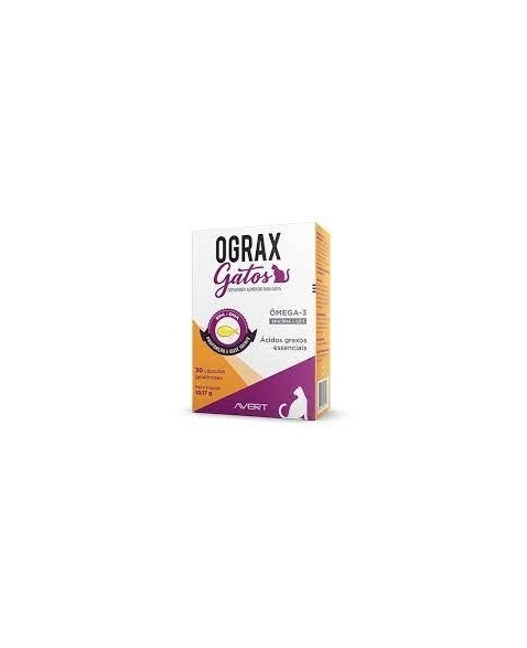 OGRAX GATOS é um suplemento alimentar composto por ácidos graxos essenciais (ômega-3), derivados de peixes marinhos. Indicado para gatos que necessitem do aporte desses nutrientes.