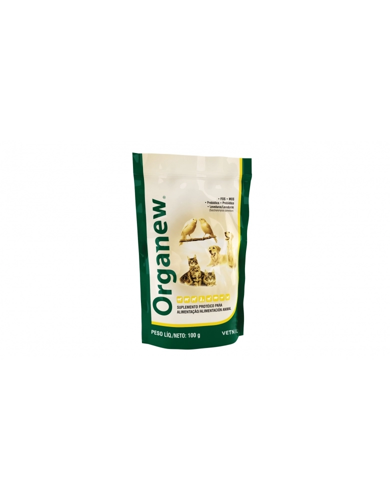 Organew é um suplemento, contendo Aminoácidos, Vitaminas, Leveduras e Prebiótico, indicado para animais em crescimento, ganho de peso, aumento da performance, estímulo do apetite, melhora na conversão alimentar e no desempenho reprodutivo.
