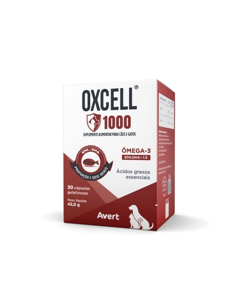 O Suplemento Avert Oxcell 30 Cápsulas é composto por ácidos graxos essenciais (rico em DHA) derivado de óleo de peixes de mares frios, sem adição de antioxidantes. Indicado para cães e gatos em qualquer idade.