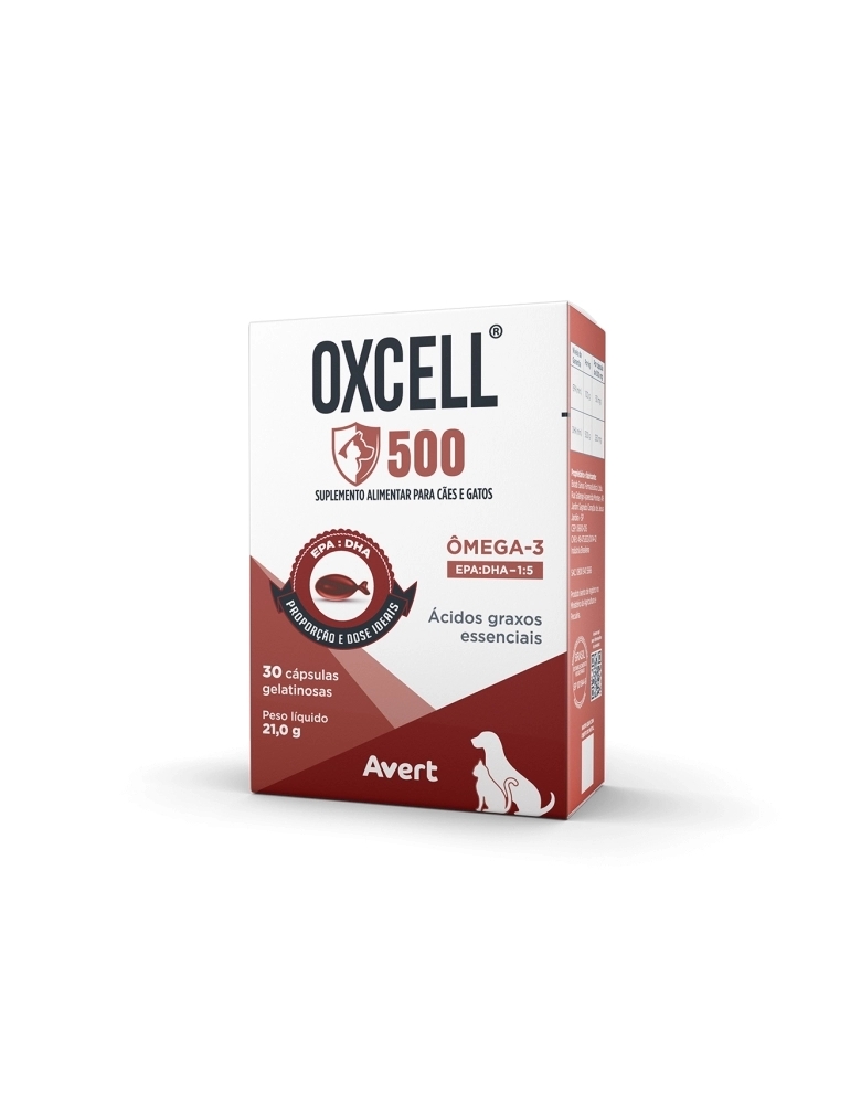 O Suplemento Avert Oxcell 30 Cápsulas é composto por ácidos graxos essenciais (rico em DHA) derivado de óleo de peixes de mares frios, sem adição de antioxidantes. Indicado para cães e gatos em qualquer idade.