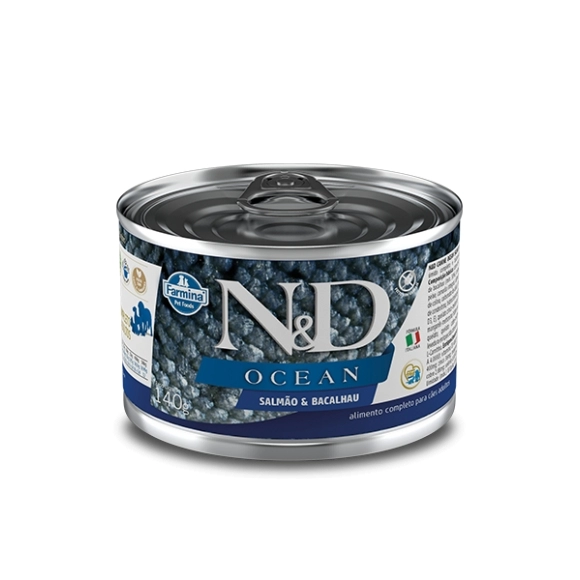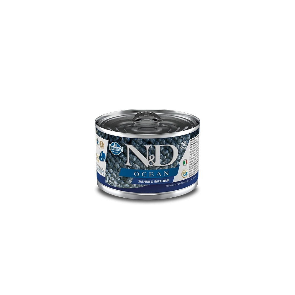 Carne de salmão (mín. 30%), carne de bacalhau (mín. 30%), arenque, batata doce, óleo de peixe, camarão integral, aditivo prebiótico (FOS), cloreto de colina, carbonato de cálcio, cloreto de potássio, sulfato de condroitina, hidrocloreto de glicosamina, vitaminas (A, D3, E), quelato zinco-metionina hidroxi analoga, quelato manganês-metionina hidroxi analoga, ferro aminoacido quelato, quelato cobre-metionina hidroxi analoga, levedura enriquecida com selênio, DL-metionina, taurina, L-Carnitina.