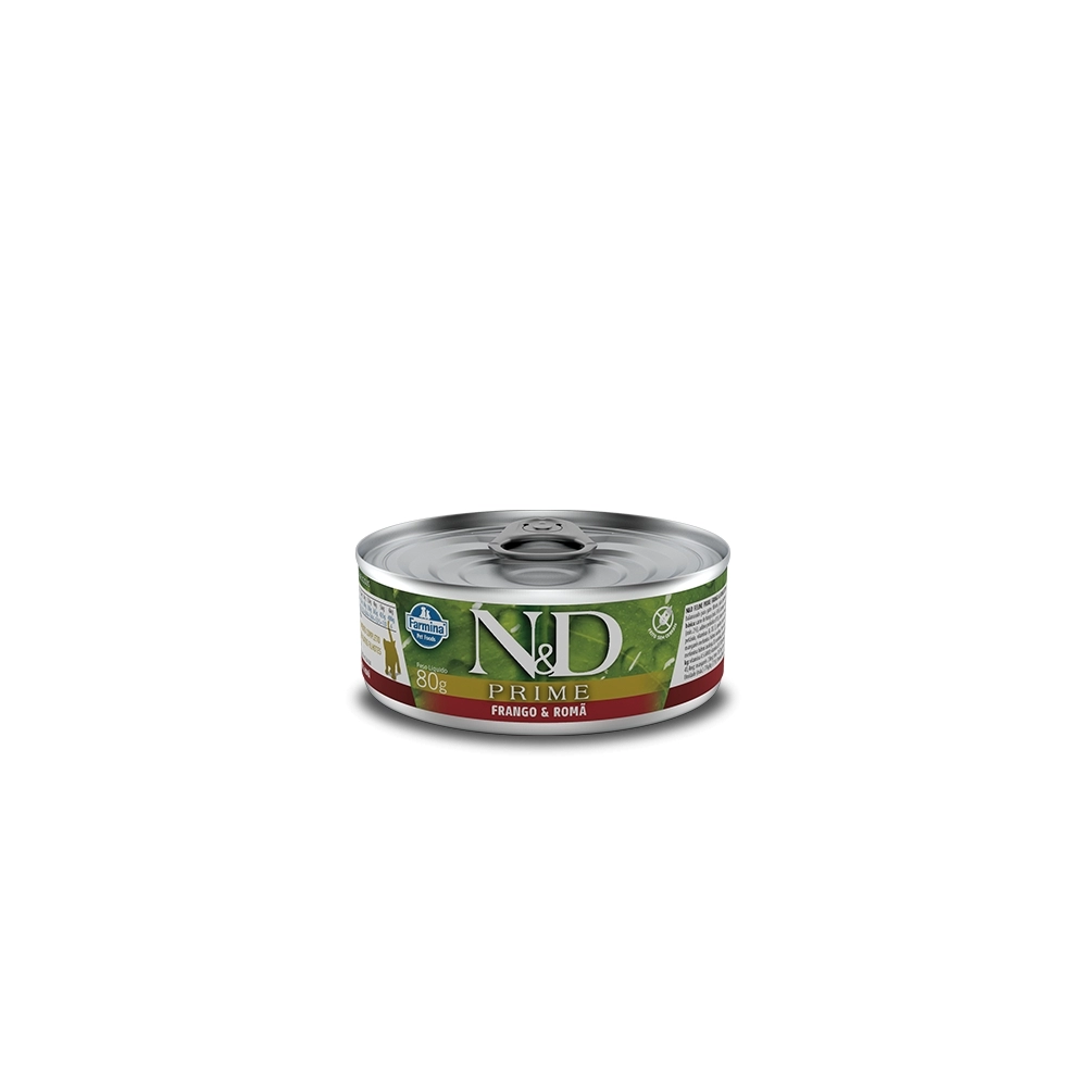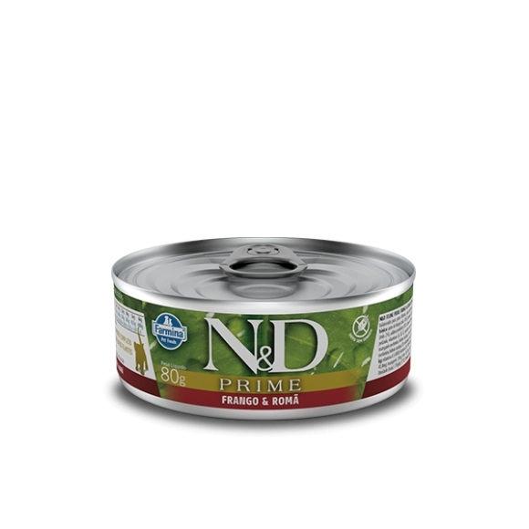 Carne de frango (mín. 50%), arenque, ovo, batata doce, óleo de peixe, romã (mín. 2%), aditivo prebiótico (FOS), cloreto de colina, carbonato de cálcio, cloreto de potássio, vitaminas (A, D3, E), quelato zinco-metionina hidroxi analoga, quelato manganês-metionina hidroxi analoga, ferro aminoacido quelato, quelato cobre-metionina hidroxi analoga, DL-metionina, taurina.
