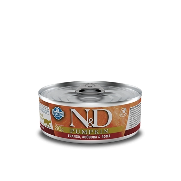 carne de frango (mín. 45%), arenque, ovo, abóbora (mín. 5%), óleo de peixe, batata doce, romã, aditivo prebiótico (FOS), cloreto de colina, carbonato de cálcio, cloreto de potássio, vitaminas (A, D3, E), quelato zinco-metionina hidroxi analoga, quelato manganês-metionina hidroxi analoga, ferro aminoacido quelato, quelato cobre-metionina hidroxi analoga, DL-metionina, taurina, L-Carnitina.