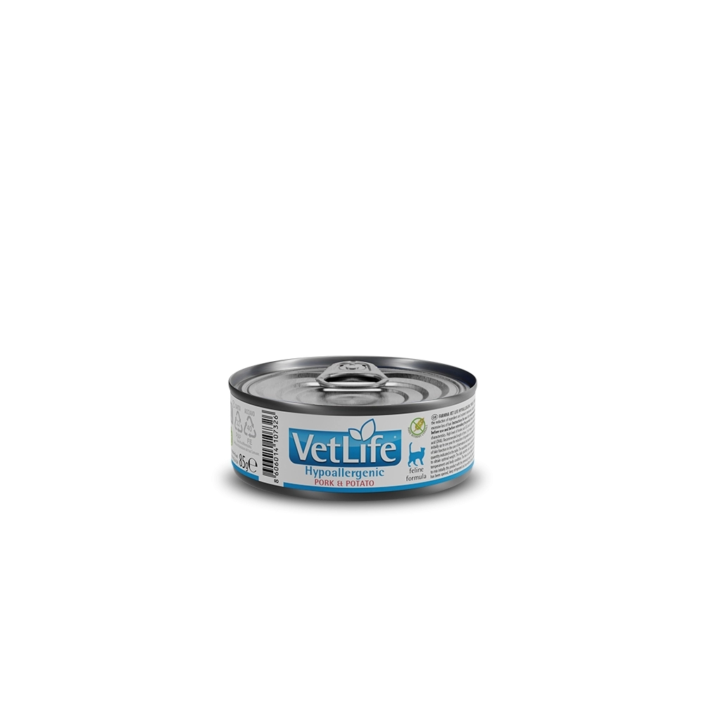RESTRIÇÕES E OUTRAS RECOMENDAÇÕES: Vet Life Cat Hypoallergenic Pork & Potato é contraindicado para filhotes, gatas em gestação ou lactação.